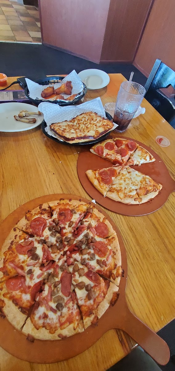 From the moment you walk through its wheelchair-accessible entrance, you can sense the warm, casual energy that keeps customers coming back. The interior has that classic Pizza Hut feel-relaxed, family-friendly, and filled with the irresistible aroma of baked cheese and pepperoni. For those driving in, you’ll appreciate the free parking lot and nearby street parking, making the visit even easier.